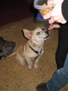 Check out these photos of Spirit showing off her new excitment for treats. She will actually touch me for a cheese straw! Oh yeah!