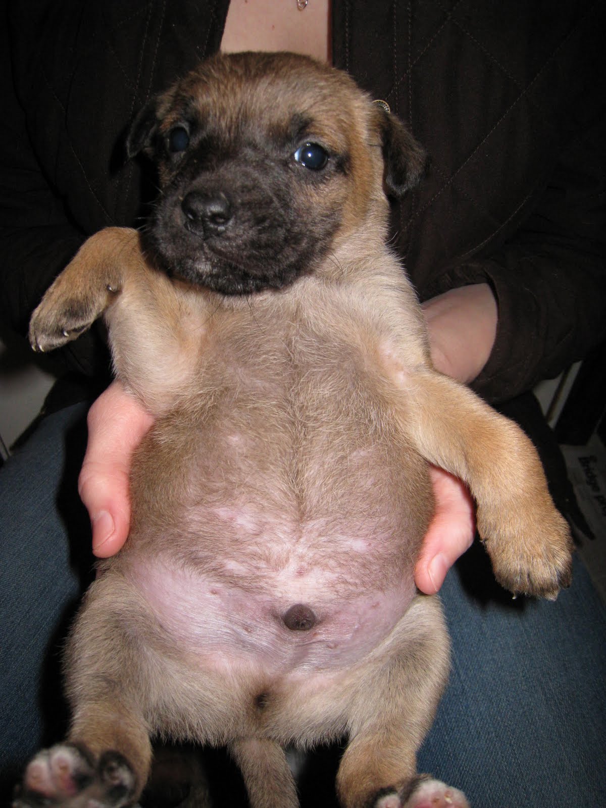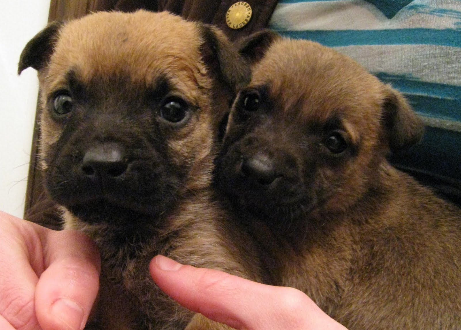 They are from a litter of seven and came to us on Saturday. For weeks, friends have been trying to get them out of a rough situation. Mom has lived outside, chained to a tree for over SEVEN years. She has a sad little shelter and is not spayed. Six weeks ago, in the freezing weather, she delivered a litter of puppies. These tiny little fighters survived several snow storms and temperatures in the teens. But, without any barriers up, they started venturing into the street. After a lot of finagling and many brave acts by some animal lovers… the owners agreed to give them up. Five of them made it into rescue and a good Samaritan took the other two.
