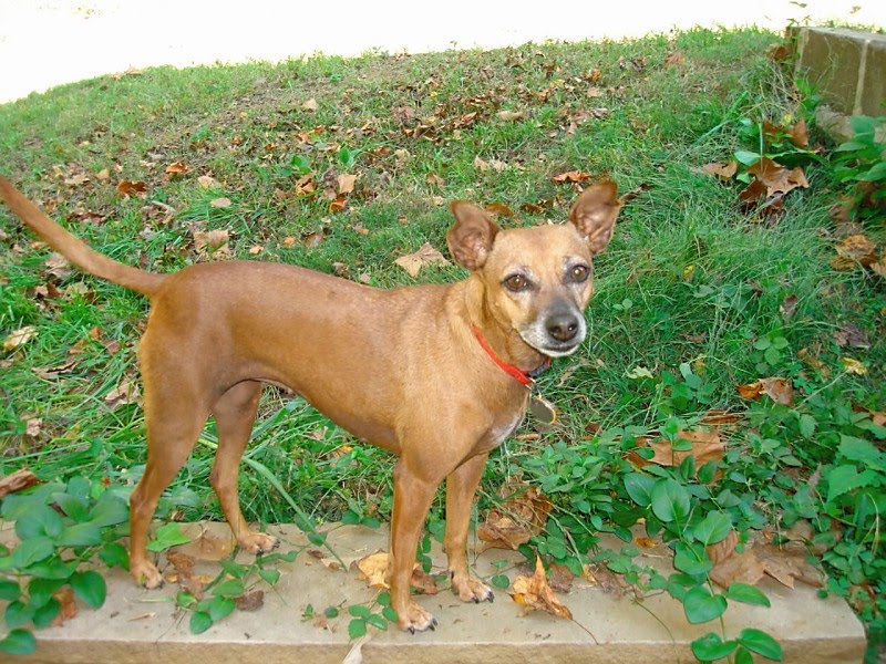 The minute I heard her story, I begged her to bring me the dog. I didn’t care what arrived… I just wanted her safe. In my head, I pictured a huge, fuzzy, tough dog. Instead, they brought a tiny little Min-Pin mix. At the time she was only ten pounds and she shook with fear in her kennel. (She now weighs a healthy 15).