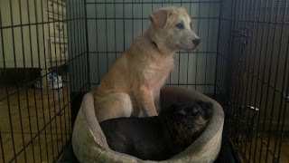 Tuck loves wire and plastic crates. I never put her in one as a puppy because I thought at the time that they were cruel. I have now come to respect kennels and could not live without them. And, as you can see… Tuck loves them too! Clearly, Spirit is not as thrilled with this idea.